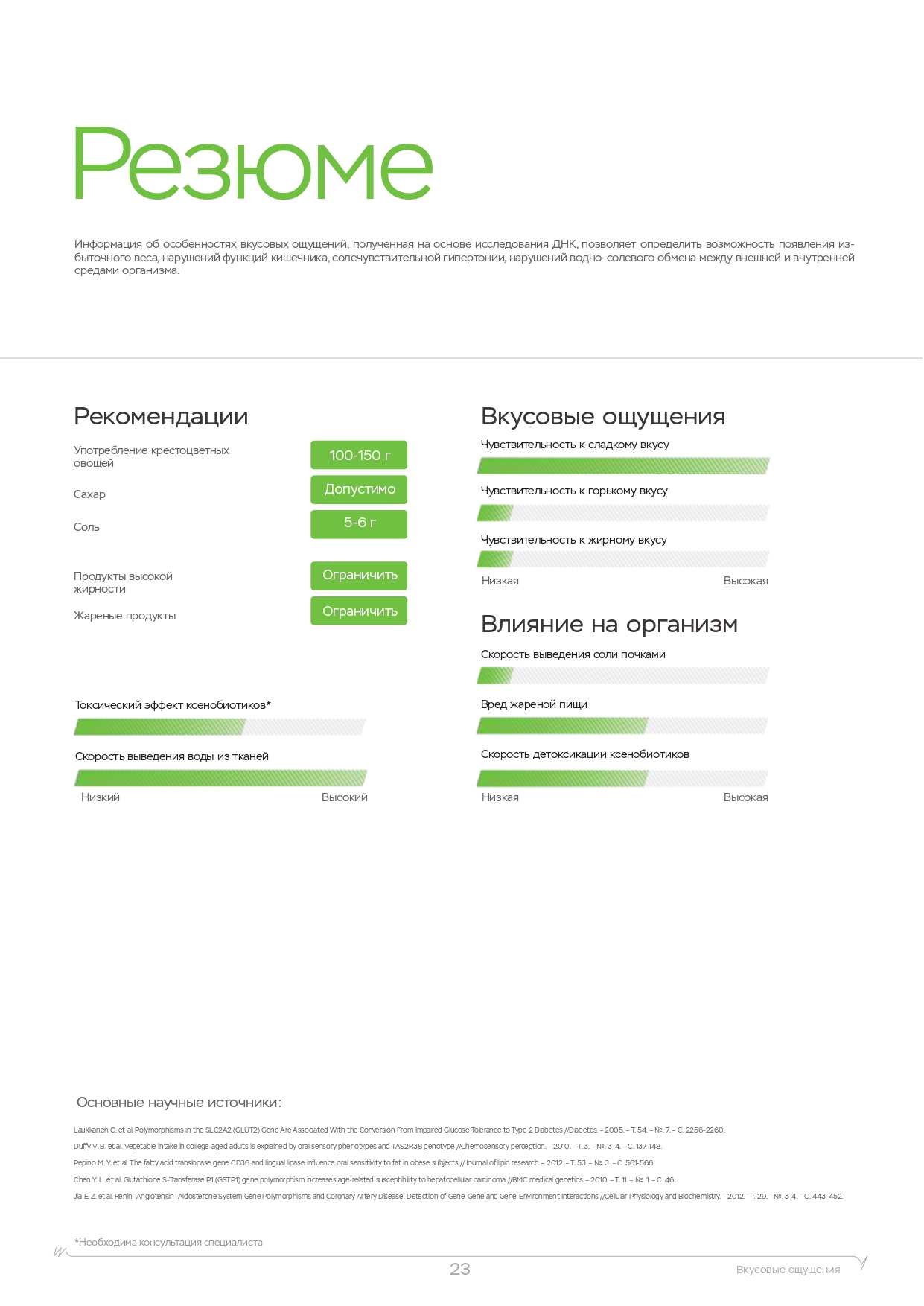 | Рацион питания Метаболизм алкоголя Метаболизм кофеина Физическая нагрузка Непереносимости Вкусовые ощущения Никотин Психологические зависимости Пищевое поведение Потребность в витаминах Уровень холестерина Спортивный потенциал | Рацион питания Метаболизм алкоголя Метаболизм кофеина Физическая нагрузка Непереносимости Вкусовые ощущения Никотин Психологические зависимости Пищевое поведение Потребность в витаминах Уровень холестерина Спортивный потенциал | Рацион питания Метаболизм алкоголя Метаболизм кофеина Физическая нагрузка Непереносимости Вкусовые ощущения Никотин Психологические зависимости Пищевое поведение Потребность в витаминах Уровень холестерина Спортивный потенциал |